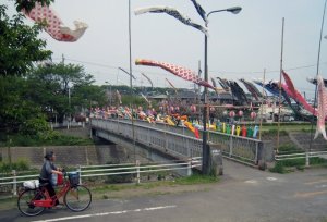 In any case, just after work I rode along Tamagawa and Asakawa looking for some distractions. Boy’s day is close by and carp streamers (koinobori) are everywhere to be found. I saw a very nice example along the Asakawa close to Hachioji. There was an even better one at Kosuge [Matsuhime] some weeks ago, but I didn’t took a photo.