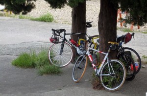 Whileas we were eating on the deck of the Gaijin house I noticed that the Cervelos of David and me fall in love below the pine trees,