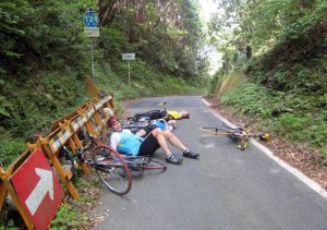 We rode only about 125 km of distance, but that involved more than 2.000 meter of climbing over four Toge, powerful, long descents and the spectacular Izu landscape.