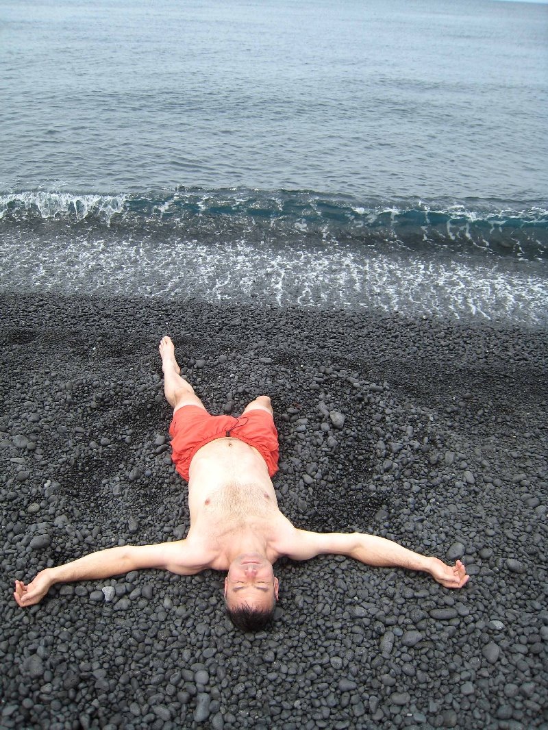 The arrival at our hotel room did little to dilute our first impression. This hotel has seen better days and there was little attention to the details. The rooms smelled of mould and the alternative would have been to open the windows – and let the sulphur gas in. But hey, after some hours of sleep, the distribution of gas masks and a trip to the beach everything looks different. The beach was full of black pebbles (resent research has calculated the number of pebbles as 8,601,767,493 in the top 10 cm layer).