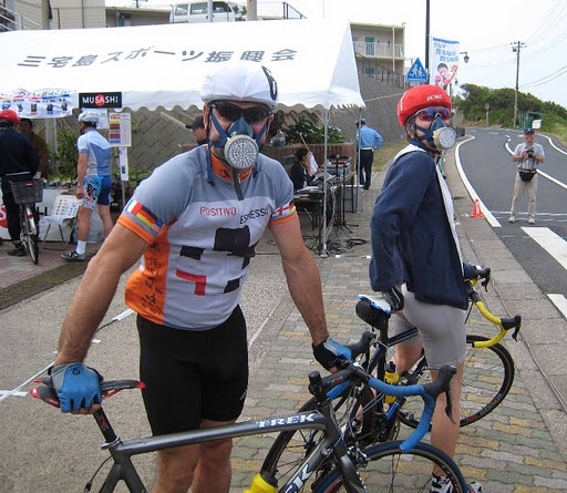 The start was by class and race number and in 15 second intervals, so I was the first starter in the D class field and Stephen the last one. Miyakejima is somehow hilly. There are no big heights to conquer but there is constant up and down. The hill climb started with a flat piece of road, wonderful to accelerate and I almost made up the distance to the last starter of the C class field. I was soooo fast. Hey, that’s how hill climbing is supposed to be, I said to myself. Unfortunately I got immediately very much slower once the slope started. I never saw the C class rider again. The next 1.6 km consisted of a 8 – 10% slope which brought me almost to my knees. I was never in danger of giving up, but my speed dropped to 10 – 15 km/hr. There was a flat part after that where I could accelerate and the remaining portion was 4 – 6% thereafter, so I could go faster. But I had no orientation where I was in relation to the goal, so I could not make an all-out attack towards the goal line on the last meters as the goal was behind a curve. One more D class rider overtook me.
