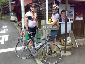 James and Michael share a joke at the bottom of the Wada Touge TT, next to the famous Jimba Soba noodle factory, „Under [the] Mountain Shop.“ Also be sure to visit James‘ blog (Jimmy from Shinagawa — link on right hand of page in „important people“ — for another photo.