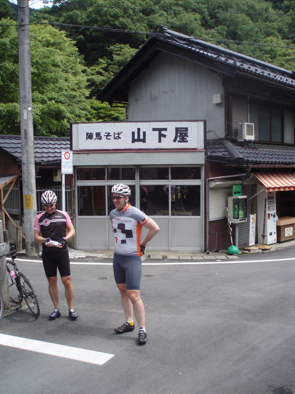 James and Michael share a joke at the bottom of the Wada Touge TT, next to the famous Jimba Soba noodle factory, „Under [the] Mountain Shop.“ Also be sure to visit James‘ blog (Jimmy from Shinagawa — link on right hand of page in „important people“ — for another photo.