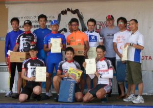 Then we were called on stage and got our commendation and the prices. Hm, a nice big bag with the words SONY printed in big letters … A play station portable perhaps? Maybe not, the first places got only a box of sport drinks. So I opened the bag. Inside : 2 bottles of sport drinks. Unbelievable ketchi prices !!! I got two bottles for free even before the race when I asked for them. Bloody capitalist oppressors, the wrath of the working riders will hit you some day !