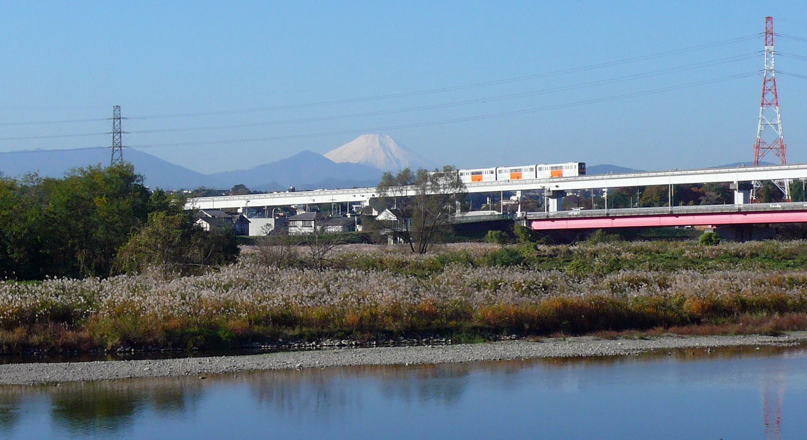 Ludwig and me set off on the proposed Chichibu ride on Thursday. I had caught a cold and was not in the best shape, but nevertheless the weather was splendid and I desperately wanted to ride out into unknown Chichibu. From the Tamagawa we could see the snow caped Fuji in the distance, the first reminder that winter will arrive soon. Nevertheless I was overdressed and started to sweat.