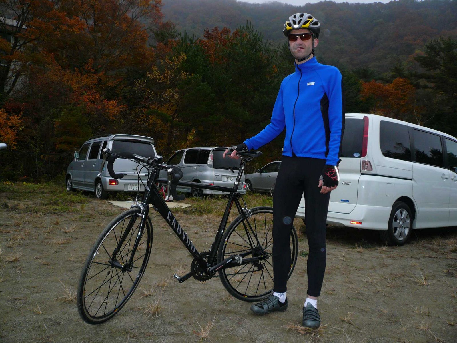 From there on everything was a fast downhill to the abandoned city of Chichiborek, where a last lunch was taken and prayers for a safe journey were send towards the nearby skies. Along the old trading road to the lost state of Yamanashikan, the three proceeded with great haste and after many dangerous adventures, featuring fabulous creatures disguised as speeding dumper trucks, endless hairpin turns and inhuman exhaustion, they finally arrived at the entrance to a tunnel which should lead to the enchanted Mitsumine mountain. Under many tears they bate farewell to their faithful sherpa who needed to be back at his village before 6 and hunt down some dinner before that.