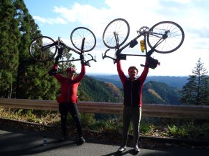 Jerome and I celebrated our victory about 2/3 of the way up the hill to Karibazaka-toge, after stopping to change a flat tube and enjoy the view.