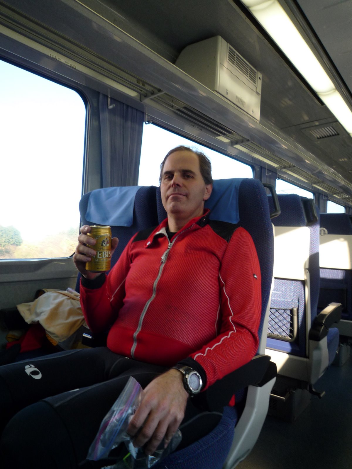 After riding along the ridge and climbing some to Shiraishi Toge vicinity, we turned left past the Ken-min no Mori parking lot (Saitama’s version of Tokyo’s To-min no Mori) and then took the Maruyama Rindo („forest road“) all the way down the hill into Yokoze/ Chichibu-Shi, a route that allowed us to get to the Seibu Chichibu train station with only 150 meters or so riding along the crowded stretch of Rte. 299, then had an almost civilized lunch and hopped the 2:25PM express train to Ikebukuro.