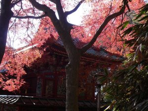 We then hiked up to Takaosan over the main route through the shrine, enjoying beautiful views of the shrine and autumn leaves, as well as over Tokyo.