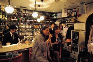 We sat outside of the store, away from the wild beast, and as our tradition stipulates, I took a plastic sake crate from a nearby snack to sit on. Yes, even in places like Aone, snack bars exist. Once we had a German financial manager at Schindler, first time in Japan, who went out for dinner with his wife and, because they were looking for something light, entered a snack bar. After an hour or so they left still hungry, as the only food served were peanuts und octopus on a stick, but also with much less money. Mental note: They don’t serve light snacks at snack bars in Japan. You also don’t meet Turks at the Turkish baths here.