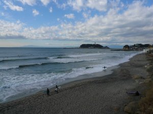 I had to wipe my eyes several times before I really believed it. Yes, there were literally hundreds of surfers in the ice-cold water or braving an ice-cold wind into or out of the water.Well, if Californians can surf in summer in a relatively cold Pacific, why can’t Japanese prove that no water is cold enough? This spectacle extended for many miles along the coast, and into a few more bays. I felt a lot better about