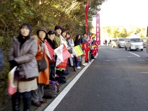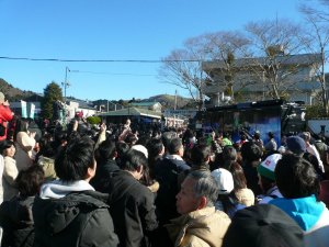 127.77 million spectators, equal to the total population of Japan minus four wives of attending Positivo Espresso team members, lined the streets today between the Tamagawa and Moto-Hakone to watch the first team training of the Positivo Espresso Team in 2009. Although time and route of the first training has been a well kept secret, after rumours have spread on the news, police and volunteers struggled to keep the masses under control.In order to avoid to be recognized by the crowds, the team members took precautions and did not wear today the new