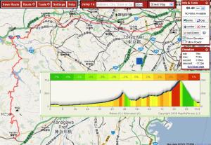 For the rest of you, … I went up the river and out to Itsukaichi, started to climb the Akigawa, turned left at Honjuku to stay on the main route, turned left again at the traffic signal above 400 meters, climbed to the tunnel to Uenohara (approx 650 meters elevation) and descended the other side to the South into the valley, turned left and climbed up and down through the infamous Uenohara „golf course hills,“ up the back side of Wada Touge, and then down the front of Wada and home (Asagawa, Tamagawa, yawn), 140km+ and plenty of hills.