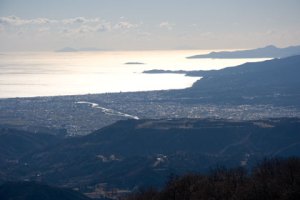 With a tailwind the climb was surprisingly fast, only 1.26 min slower than my best time from last year. On the top the view was beautiful, the best ever: Not only the coastline, but also the sea was clearly visible with Oshima, Nijima and Kotsujima lingering in the background.