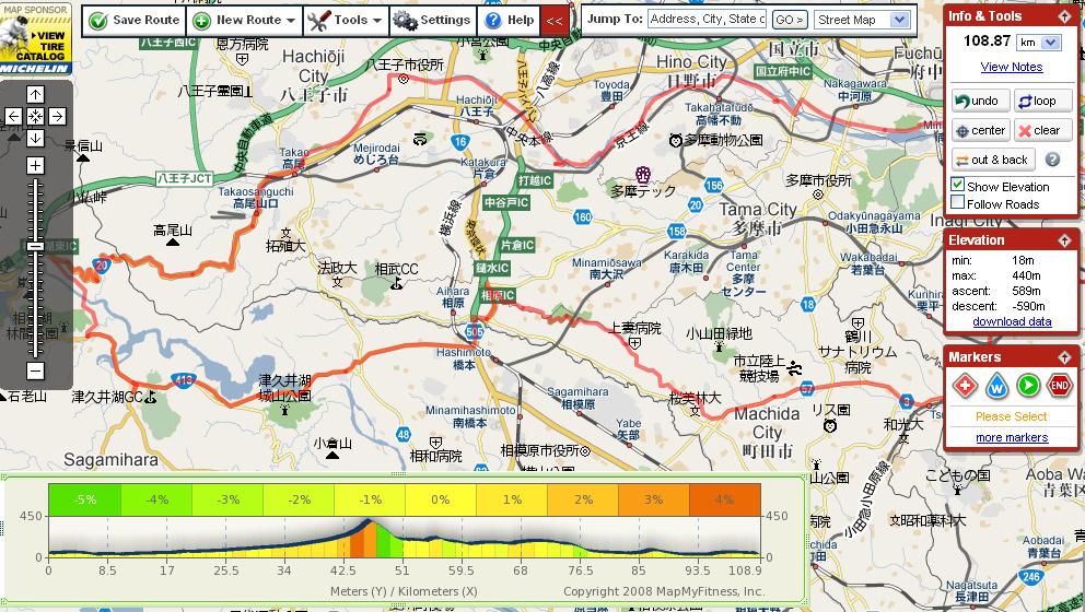 112km in all, with just one climb, and even that quite short. Not quite the ride I was hoping to do, but better than nothing, and at least I discovered a nice place to retire on the edge of Machida-shi.