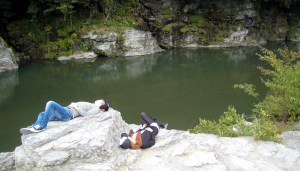 But then we found the road and it was beautiful indeed. No traffic, lot’s of up and downs and a beautiful view into the main Chichibu valley leading to Yamabushi pass. After lunch a TT up to Yamabushi and a lunch at Shomaru we went down on the other side and up to Karibazaka. Many riders were out there and we continued along the green line to Sadamine pass, then took a turn North and went up the backroad over Kayunita pass to Nihongi. Boldly we decided to go further and discovered some new passes, such as Samugami, before we finally arrived at Nagatoro, the famous gorge which is mentioned in every sightseeing pamphlet about Saitama (although there aren’t many).