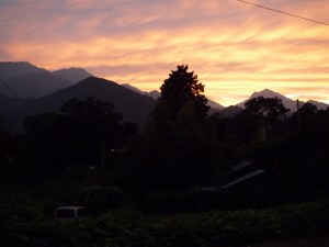 We were rewarded with a spectacular sunset over the Minami Alps as we climbed toward Yatsugatake, past Anayama station. The weather was perfect (other than the headwind), and I will always remember riding on this country road in the fading light, then the quiet of the darkness. Very nice countryside.