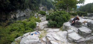 But then we found the road and it was beautiful indeed. No traffic, lot’s of up and downs and a beautiful view into the main Chichibu valley leading to Yamabushi pass. After lunch a TT up to Yamabushi and a lunch at Shomaru we went down on the other side and up to Karibazaka. Many riders were out there and we continued along the green line to Sadamine pass, then took a turn North and went up the backroad over Kayunita pass to Nihongi. Boldly we decided to go further and discovered some new passes, such as Samugami, before we finally arrived at Nagatoro, the famous gorge which is mentioned in every sightseeing pamphlet about Saitama (although there aren’t many).