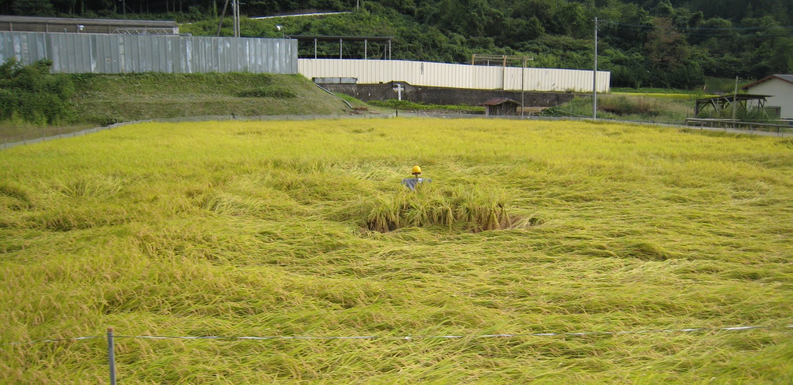 Before the harvest still to keep away the crows (not effective in case of German ones) but couldn’t keep away the storm.