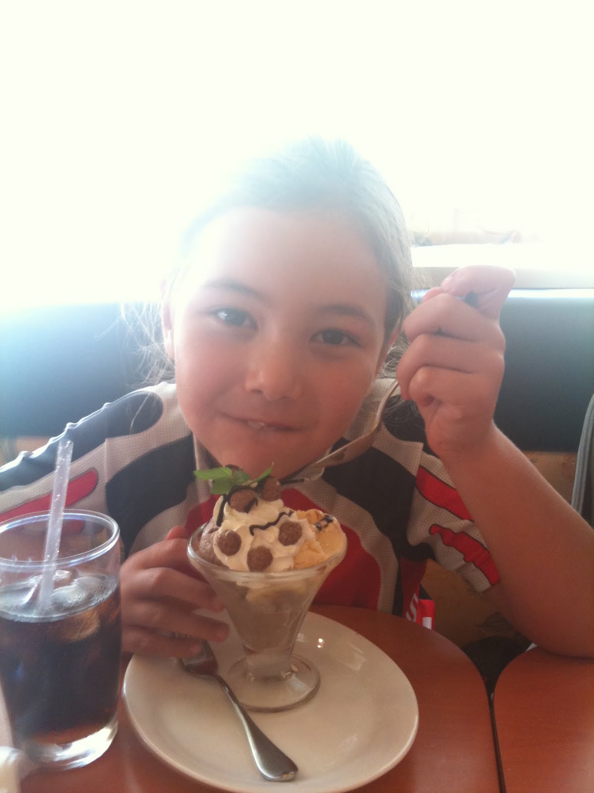 and followed the river back towards Tsurugamine on the far bank. Reaching Nishiya we decided to stop for lunch at the Denny’s on Route 16 and got some hot food and sugary drinks in us. Also as a special treat I was allowed a Ice Cream Sundae, for all you Dad’s out there this is pure energy, just take a look at the photo, I’m about to go to critical mass!