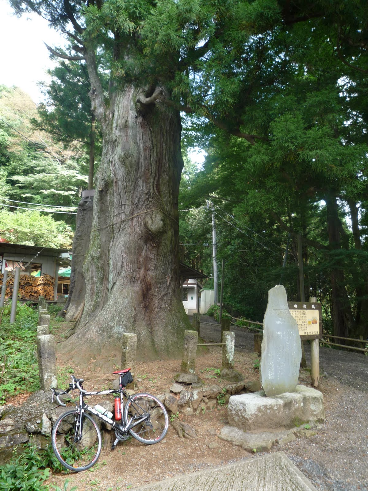 We set off up Route 53 and made short work of the rollers on the way to the turn off found by Tom recently. Stephen joined us [at the entrance to the Tokyo Hill Climb course] and we were soon on our first climb of the day to 450m, and then onto the ridge. Which wasn’t flat. Tough work, but we were soon descending proper and then beginning our second proper climb of the day [to Nenogongen, at 650 meters+ elevation]. Much to our delight, well, trepidation really, we found the last 300m of the climb to the hill top monastery to be over 22% gradient and even with a triple crank I had to jump off and walk for a few minutes.