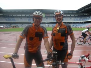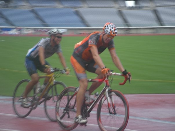 I’m not sure where I lost Michael but towards the last hour the race became a very personal battle between myself and two of the Team Ari riders, not wanting to name names but one of them spent the whole ride speaking to himself and I decided to try and breakaway from him and his constant ramblings to get some peace and quiet, especially in my safe and hurt free place in the white lines on the running track where the mind drifted to hot baths and cold beers.