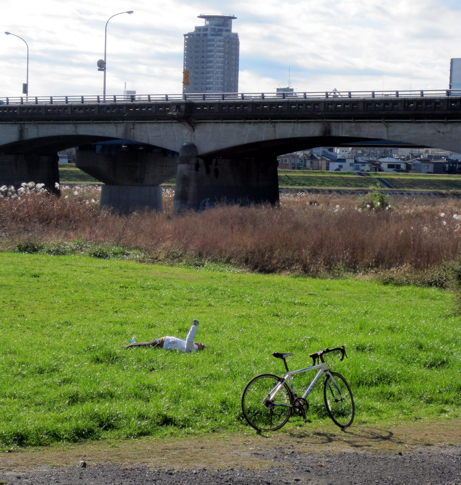 Yesterday, while cycling along the Tamagawa, there was a strong headwind which made it really hard to make progress. I was not the only one who felt so, other cyclists just falled down from their bikes to rest and catch some breath.