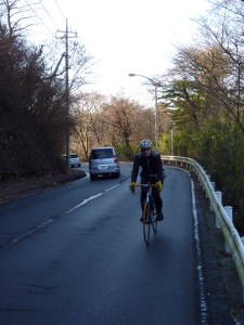 It was indeed a nice ride, and I enjoyed my first ride on the old Tokaido. It didn't feel steep at all, but this was probably because I was chatting with MOB most of the time and didn't pay too much attention to steepness and speed.Mikkuni was the first real climb of the day, and I made it up in 39:36 which seems pretty decent in winter clothes (I was sweating like mad).The descent right after Yamabushi Tunnel was fast, but also treacherous. I slipped a bit on a stretch of ice while breaking down from over 60km/h, but managed to stay upright.The rest of Doshi was amazingly fast, despite headwind in places. Jerome's rocket engines had finally alighted and nothing was to stop him. What a difference from the first part of the day!After Hashimoto, Jerome led me to a different approach to the Tamagawa, which starts at the exit of the Tank Road. Yaen Kaido has no rolling hills and is nice and fast – if it wasn't for the frequent traffic lights and the watchful eyes of a police motorbike riding with us for almost all of the road.The Tamasai was truly horrible – masses of careless people (I even saw a guy riding his mamachari with a beer can in his hand!). Taking turns against the headwind, Jerome and I somehow made it until where I got off to cycle towards Setagaya Dori. I made it home just before darkness at 16:50, and I hope so did Jerome.