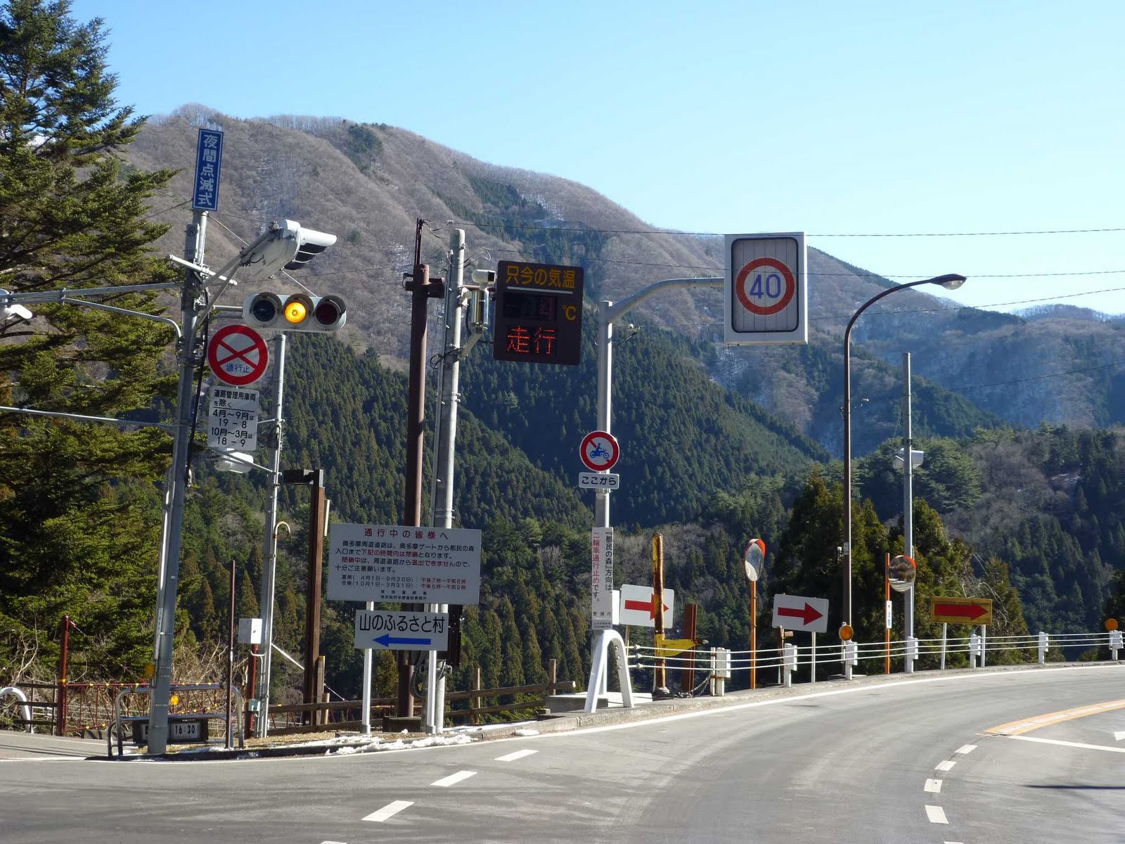I turned around and headed back to the Okutama Lake. It was clear climbing up to Kazahari would be equally impossible. But I wanted to see at least what the new traffic restrictions for motorbikes looked like. Would there be someone making sure motorbikes would not enter? Would there be a camera? Would it say that bicycles are not allowed either? I cycled the 3.5km from the entrance of the road to the point from which motorbikes are banned.