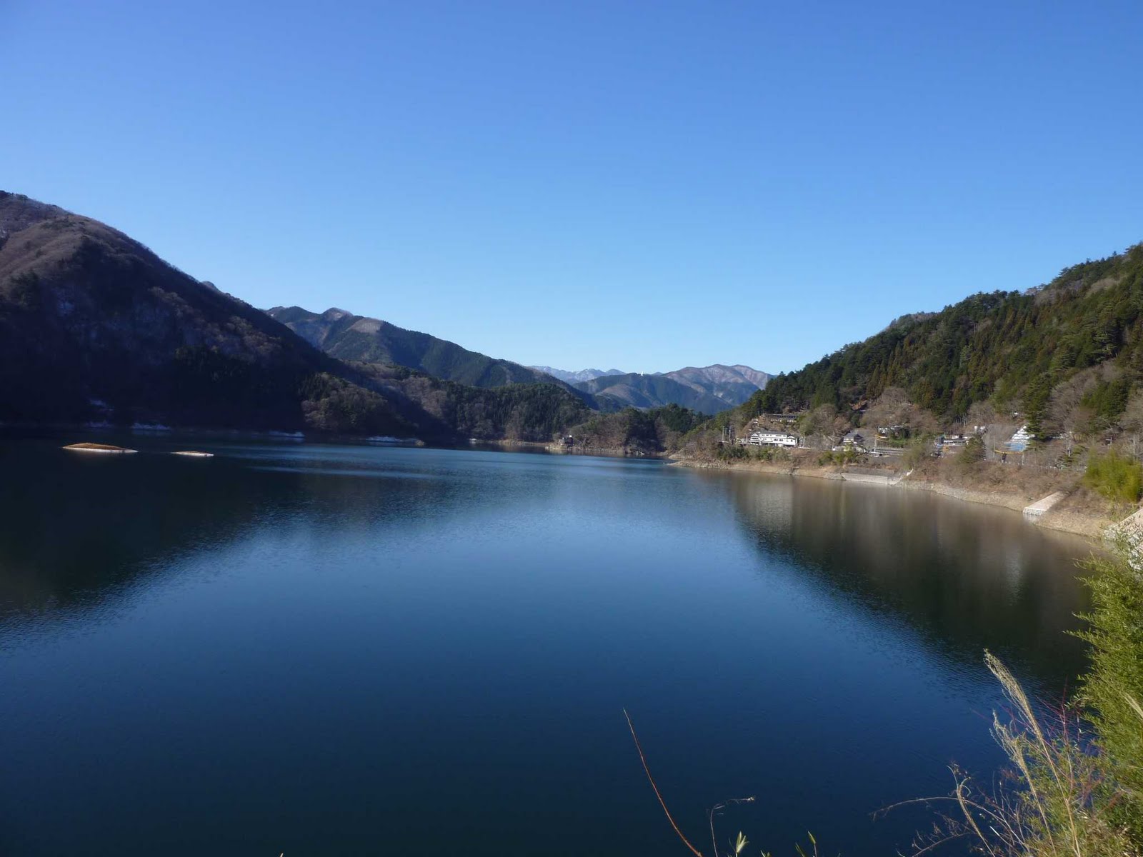 Okutamako looked pretty and peaceful. The surrounding mountains were snow covered on their northern slopes, free of snow on their south. The road was free of snow and ice thanks to all the sun it was getting, except for some icy patches on the side which the sun was unable to reach.