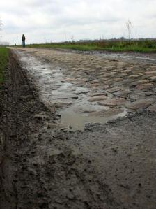 They knew little of the permanent effects of the war. Nine million had died and France lost more than any. But, as elsewhere, news was scant. Who even knew if there was still a road to Roubaix? If Roubaix was still there? The car of organisers and journalists made its way along the route those first riders had gone. And at first all looked well. There was destruction and there was poverty and there was a strange shortage of men. But France had survived. But then, as they neared the north, the air began to reek of broken drains, raw sewage and the stench of rotting cattle. Trees which had begun to look forward to spring became instead blackened, ragged stumps, their twisted branches pushed to the sky like the crippled arms of a dying man. Everywhere was mud. Nobody knows who first described it as ‚hell‘, but there was no better word. And that’s how it appeared next day in the papers: that little party had seen ‚the hell of the north.‘