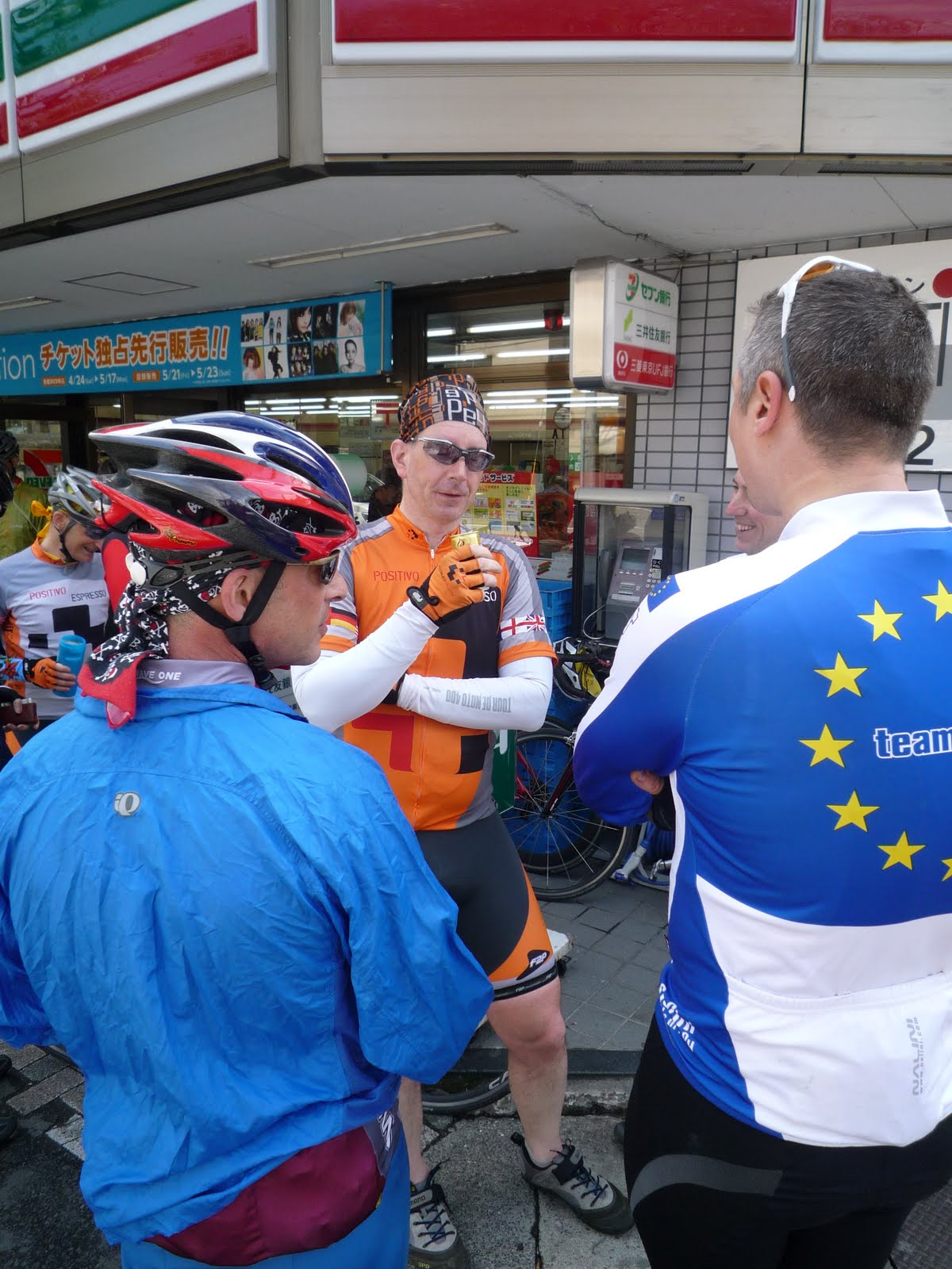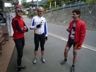 Sergey, Thomas and Ludwig — at one of the convenience stores after Ura Wada, before the „golf course hills“: