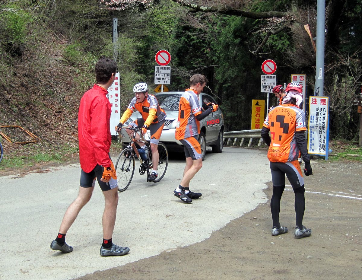 OK, in the photo we can see Ludwig, David and Hiroshi taking little interest in the suffering of Graham on the last meters up to Wada Toge. Not very interesting indeed. But who knows something about the silver-grey SUV trailing behind Graham? I don’t know why, but something make me suspicious … James?