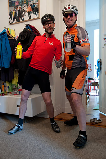 I got some more stufff. Please note the standard size safety pins and the „Hey, my body is full with pills“ type peppermint box.Seems I was first in something. Then I took the subway to Fabs house, now it was raining. Fab and Tibor did well in the 60 km considering their lack of training (Fab did two weeks) and coaching (one day). So we decided to set up a training camp in Mallorca for next year.