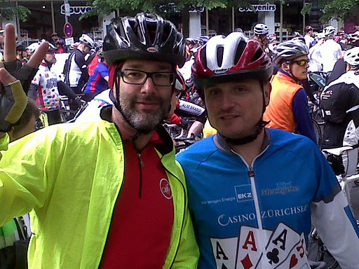 When I was waking up the next morning and looked out of the window, it was raining. Heavy rainfall was forecasted for all of the day with 96% probability. So I did what every decent optimist would do in such situation. I checked other weather forecasts on the web for more optimistic information, unfortunately to no avail. As I have told Fab many stories about my bad weather cycling adventures in Japan (Sado Long Run 210 in 2008, Yokohama Bike Navi Enurance in 2008 and 2009), perhaps slightly exaggerating one or the other detail, I was in no position to bail out. Luckily the rain stopped and we collected our third team member, Tibor S , Herr Professor; as these days I tend to prefer to be surrounded by men of equal or higher academic credentials.