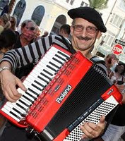 On the approach to the Col de Soulor the group was serenaded by a professional Frenchman in a beret and stripy shirt playing an accordion. Set off up towards Soulor feeling good about good average speed maintained so far. As the Soulor goes on it gets steeper and more open. The last few kms were in baking heat and often at 8%. Unfortunately this is where James started to get very bad cramp but he soldiered on. I rode up alongside some 2 Japanese riders for a chat which rather surprised them. Every km there is a sign telling the riders how far to the top and the average gradient of the next km. At first these are useful, but soon become depressing and eventually, on Tourmalet, soul-destroying. I was amused on the way up to see„HTFU“ in large letters chalked across the road. This is the important Rule 5. At the top I got James some salt water and ointment from the medical tent. The descent from Soulor is fast and gorgeous (roads are repaved for the Tour de France) but one had to be wary of over-enthusiastic Italians and the occasional pile of donkey sh*t. Hitting a pile at 75km would not be fun. James, a Frenchman and I took turns in pulling a fast train down to the feed-station at Argeles-Gazost, 1,000m below the top of Soulor.