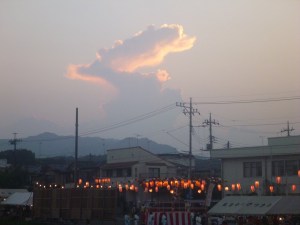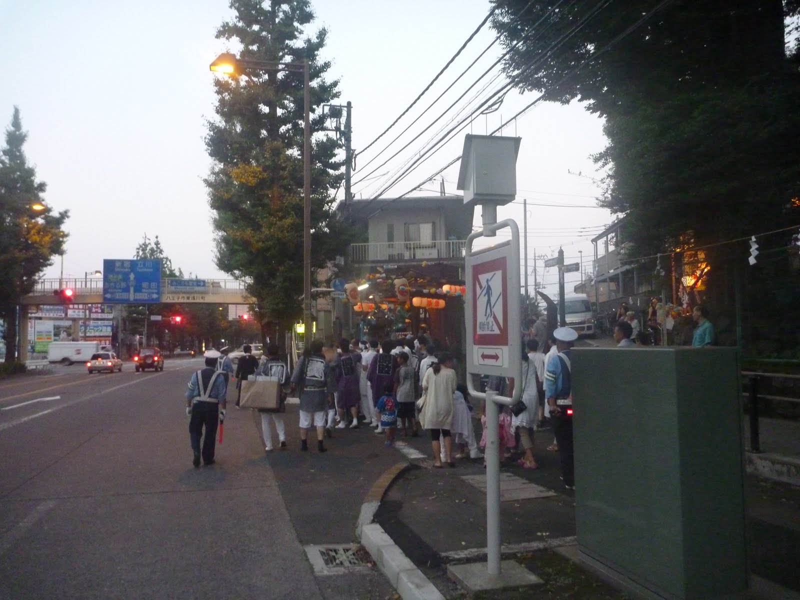 As I passed Takao, some of the summer festivals were underway. One group had their matsuri along the Asagawa path, in a nice spot. Another decided to have their matsuri on Route 20 near a busy intersection, complete with police traffic escort (I think I saw some of the same elderly cops who handled the Tamagawa fireworks on Saturday — overtime pay bonanza this weekend.
