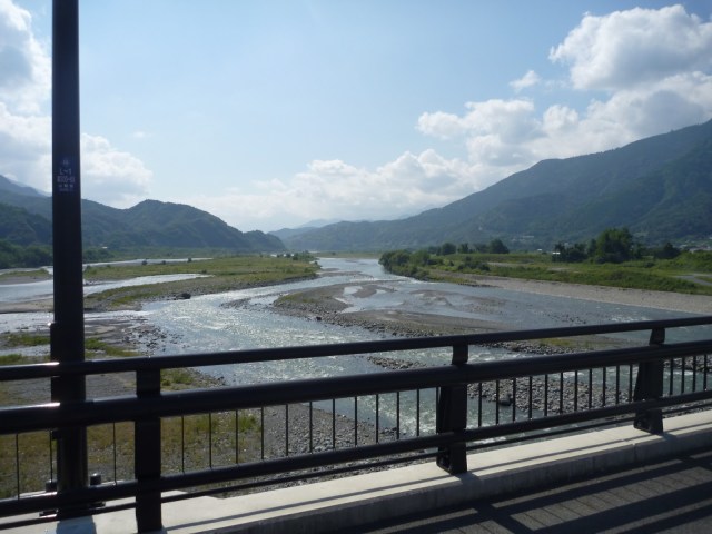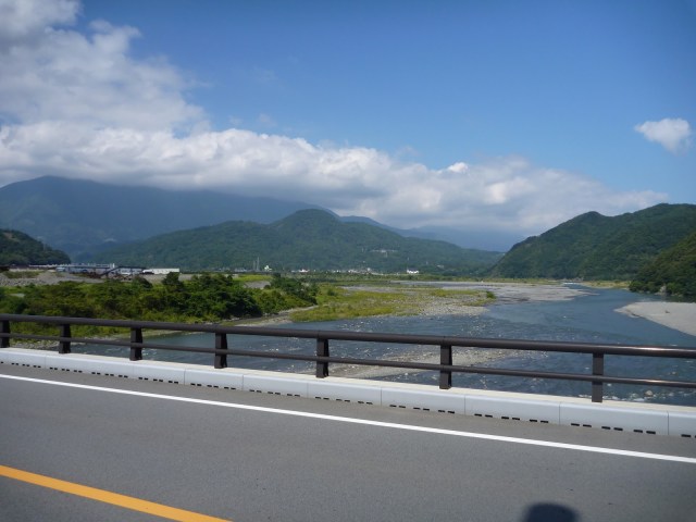 | The view North while crossing the Fujikawa on Rte 300, 75 km into the ride |