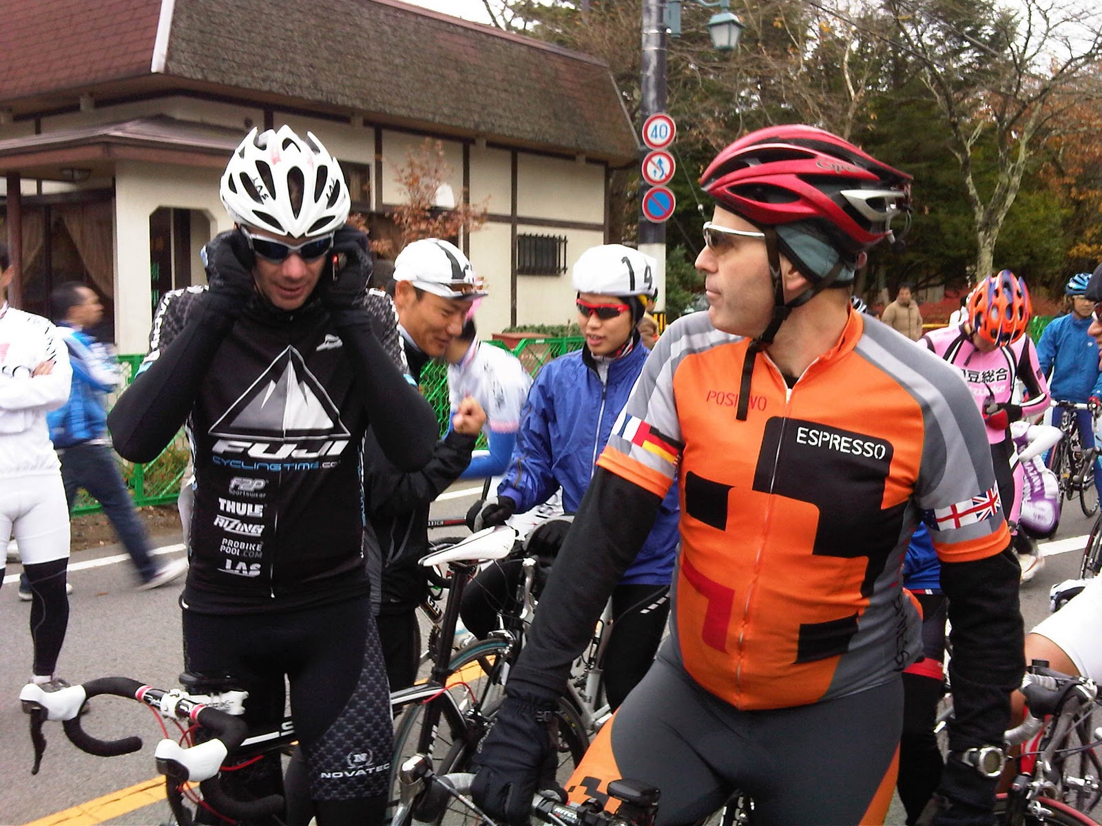 We joined together for the early morning team time trial, with Kawaguchi-san, the TT champion of Fuji Cyclingtime.com subtituting for Yair, who could not attend due to injury (see the Tokyo Cycling Club bbs for details — fortunately he is on the way to recovery, though it will take awhile).
