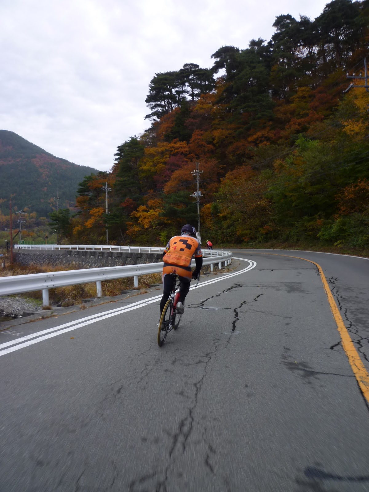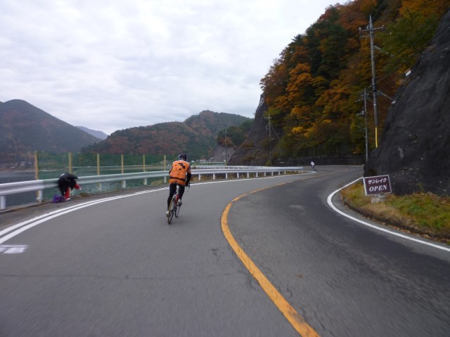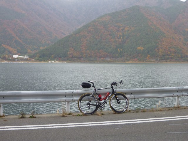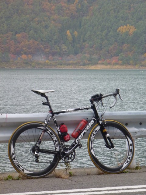 Next, I saw a rider in the green „Saitama Audax“ 2007 Paris-Brest-Paris jersey riding about 75 meters ahead of me. At last, a chance to get some benefit from my Brevet experience! Any one who has ridden a few Brevets in Japan learns that this particular green jersey is something special. Brevet riders tend to be „slow and steady“. Not Saitama. They are FAST and steady. They haul ass over long distances. If I could only catch him. … Somehow I managed to do so, and again issued a challenge to ride together. At first, he pulled me, but by the time we got to the back stretch of the lake, I had recovered some and we shared the work, somehow maintaining a decent pace, trading off again and again, each taking turns resting in back and then cutting inside on one of the sharp corners to take the front duty.