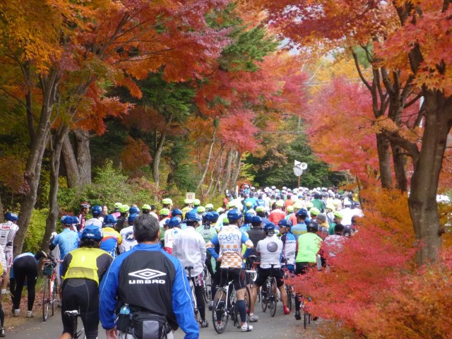 Some others had dropped already earlier in the first lap, but I had no idea how many, and I found myself with two riders in my sights, and the main group fast disappearing up the road. Panic set in and I tried to push back toward the group. As I passed the two, I hollered „let’s ride together“ in Japanese. One took the challenge and hopped on my wheel … but he could not pull, or keep up, and I left him behind as I accelerated on the downslope early in the second lap. The field was already a few hundred meters ahead.