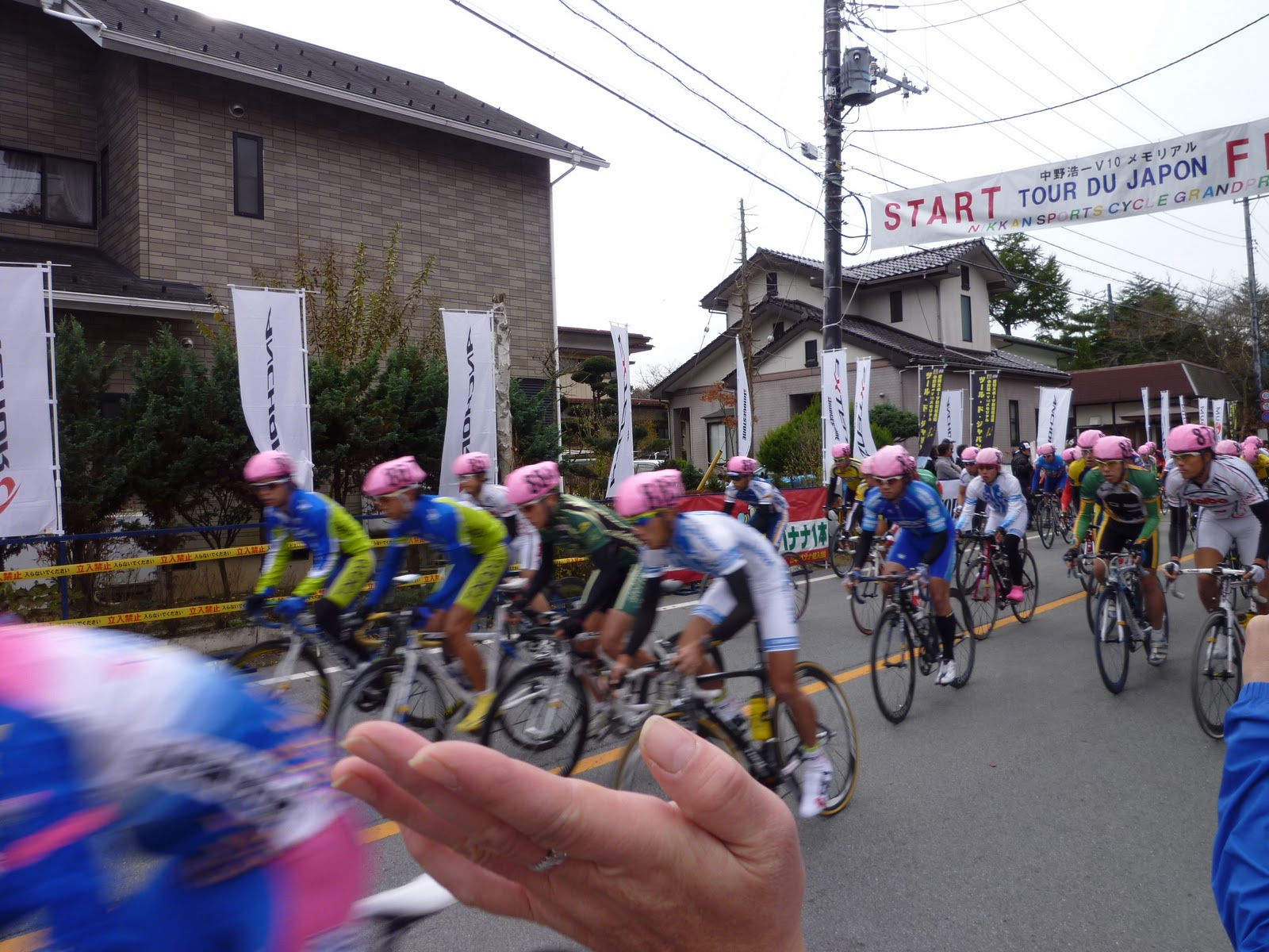 James Machin (racing for Fuji Cyclingtime.com) was there with his family and pro/semi-pro teammates to claim the overall JCRC series championship/S class championship. James finished in the bunch sprint, sustaining 44.51 kph over the 60 kilometers, but voiced some frustration at the tactics of Team Bridgestone Anchor, which joined by „special appearance“ as an 8-person team, giving them the ability to control the race by working together as the other, mainly individual, entrants could not. He ends the season as the JCRC overall and S-Class points champion.