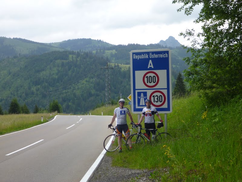 My legs felt fresh all the way up.  The clouds looked ominous, but we pressed on and were rewarded with dry pavement, and continued on all the way to the heavily fortified border with Austria!  Another stamp in the passport, and we had successfully scouted the entire German Alp portion of the Transalp on a late Friday afternoon.  One country out of three done, dead and over.  Michael is planning to contact the organizers and see if we can start at the border on Sunday morning, since we have already done that stretch.