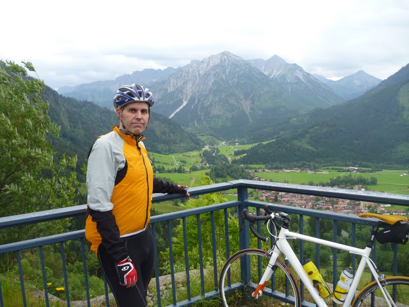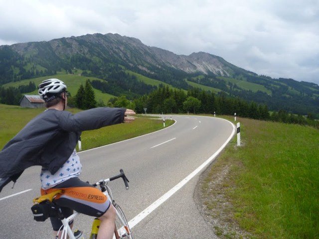 As it was already 4PM by the time we got into our room at base camp, we quickly assembled our bikes and headed into town, did one general circuit and then launched into our scouting ride up the valley to the Southeast, where the race will start on Sunday.  We made good time as far as Bad Hindelang, where the road turned up, and we started to climb the mighty Oberjoch, towering hundreds of meters above Sonthofen and Bad Hindelang.