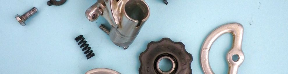 Also, nach meiner Zählung. Vor ein paar Wochen habe ich in einem akuten Anfall von Kaufrauschitis, ein defektes Campagnolo Nuovo Record Schaltwerk von 1973 gekauft. Der Verkäufer hat übrigens nicht übertrieben, es war richtig schön defekt und jenseits jeglicher Reparaturmöglichkeit. Jetzt habe ich hier einen Haufen … Teile. Im wesentlichen Nutzlos.