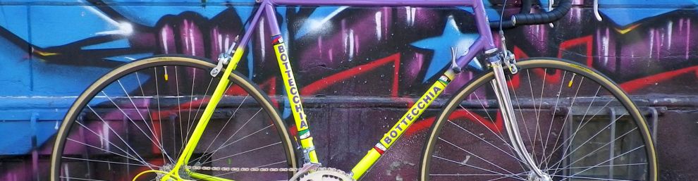 Genauso gelb und lila wie dieses Bottecchia Printer Rennrad von 1991. Ich hatte es vor ein paar Wochen gekauft, in einem guten, aber ungepflegtem Zustand von einem netten Belgier, nennen wir ihn hier einmal „Fritteken“. Fritteken verkaufte mir also sein Bottecchia und ich machte mich daran es zu restaurieren.