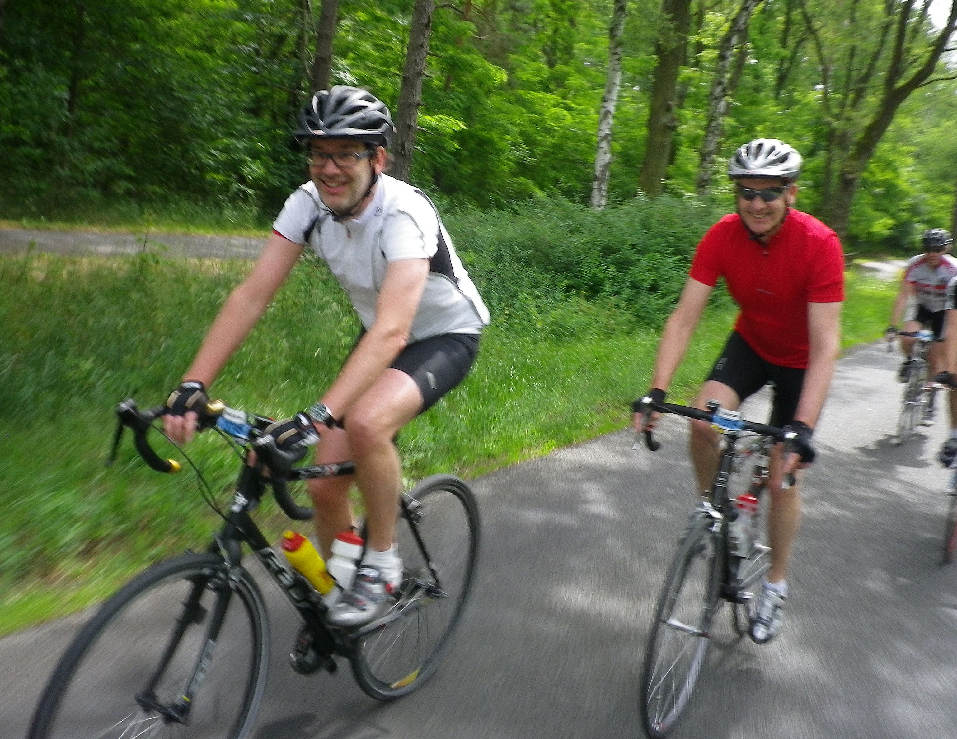 Carsten B hat eine …. interessante …. Technik. Zunächst einmal tritt es mit einer sehr, sehr niedrigen Frequenz. Das sieht eigentlich eher so aus, als wenn er Mofa fahren würde und so zum Spaß ein wenig mit tritt um warm zu bleiben. Daran erkenne ich ihn auch immer gut von hinten. Außerdem hat er die Angewohnheit auch im Peloton sehr oft freihändig zu fahren („Look Mum – no hands!“). Wenn er ganz besonders gut drauf ist, ißt er dann freihändig Eierwaffeln und preist diese dabei als Geheimrezept gegen das Hungerästeln an. Konsequenz: Man hält sich lieber ein wenig fern von ihm und hoft das Beste.