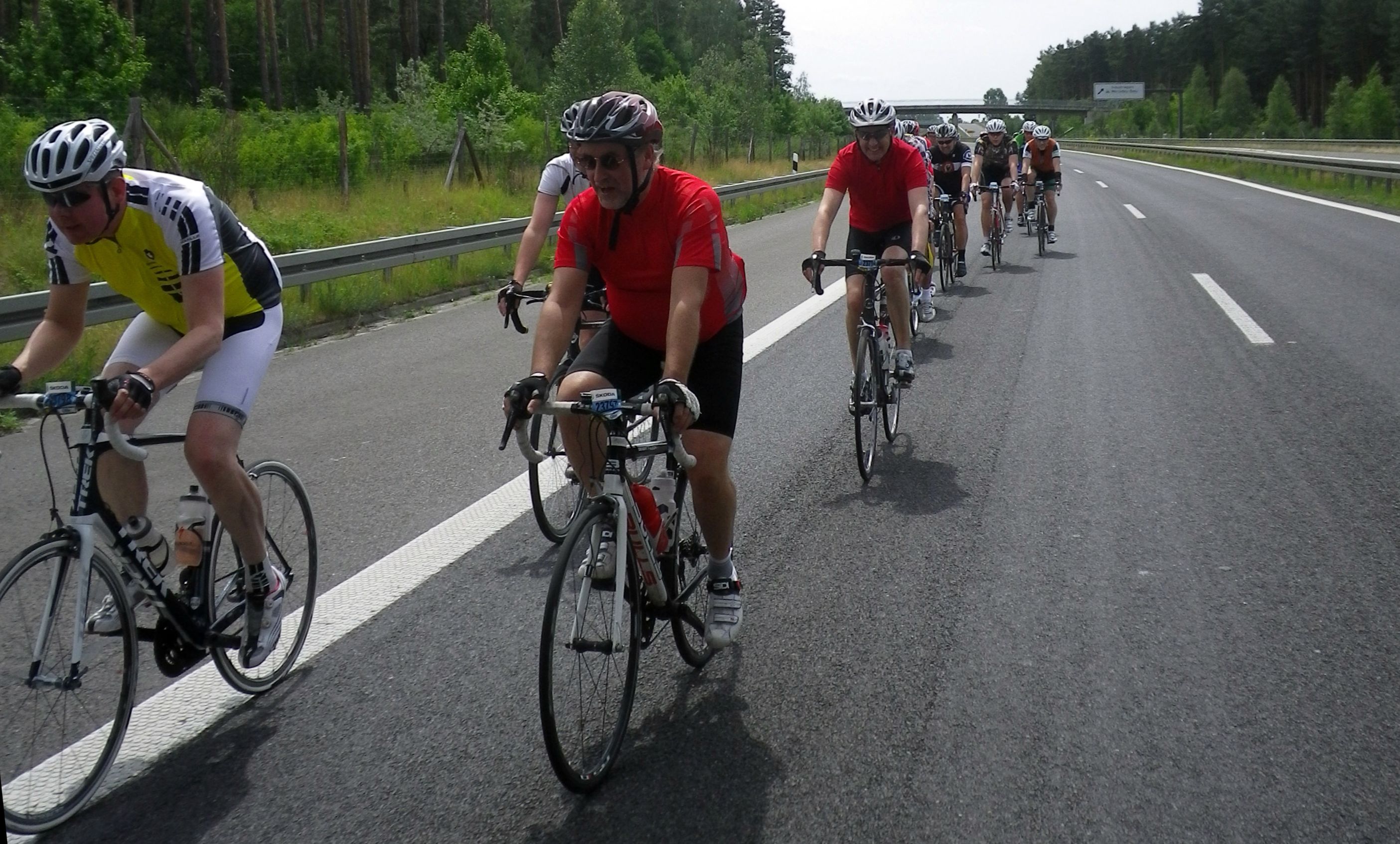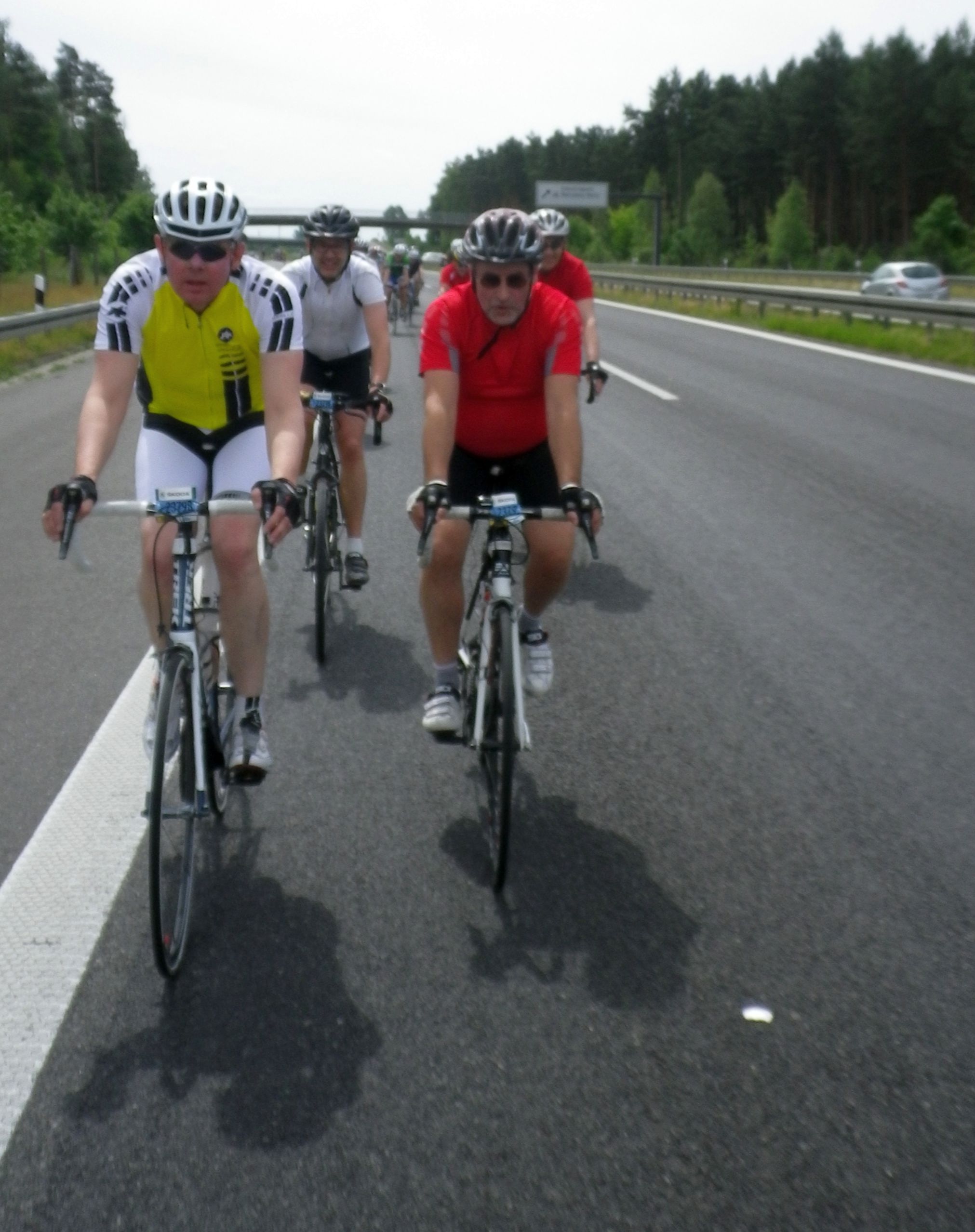 Nun sind wir (vier) wieder alle vereint. Es ist nun einfach eine Gruppe zu finden und die nächsten Kilometer sind gerade und vergehen wie im Fluge. Im Gegensatz zu den Jahren zuvor gibt es diesmal keine gefährlichen Situationen. Ich habe nie das Gefühl, dass ich mich hinlegen werde. Ab und an werde ich gefährlich links überholt, aber auch dies hält sich in Grenzen.