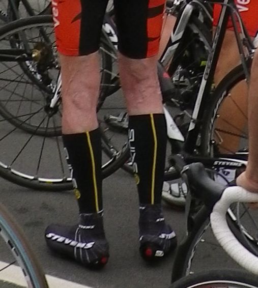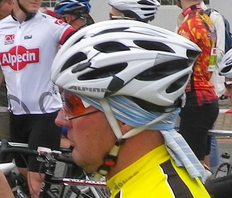 Und dieser hier hatte es wohl mit den Augen, jedenfalls trug es vor seiner Radbrille noch eine weitere. Oder hatte er vor im Rennen etwas zu lesen? Vielleicht die Biographie von Udo Lattek („Ich war oft schneller als der Ball?“).
