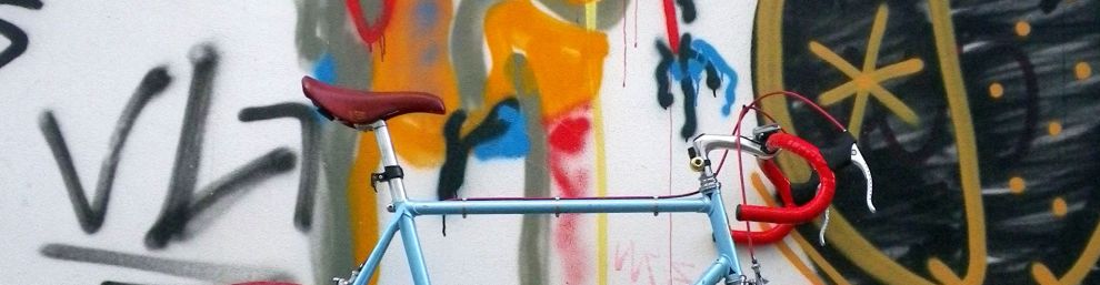 Einmal hatte ich einen Unfall damit, der damit endete dass ich ein paar Blutergüsse hatten und eine der Schellen der Bremshebel ausgewechselt werden musste. Aber sonst läuft alles prima. Durch dieses Rad habe ich auch den Spaß am fixed-gear fahren gefunden. Nicht das ich die Bremsen abmachen würde – ich habe schließlich Familie. Aber, das ist sicherlich von allen Rädern die ich gebaut und behalten habe, das Rad was mir am meisten Spaß bereitet hat.